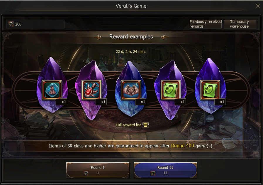 After every 400 games, you are guaranteed to receive either a Super Rare or Ultra Rare reward.