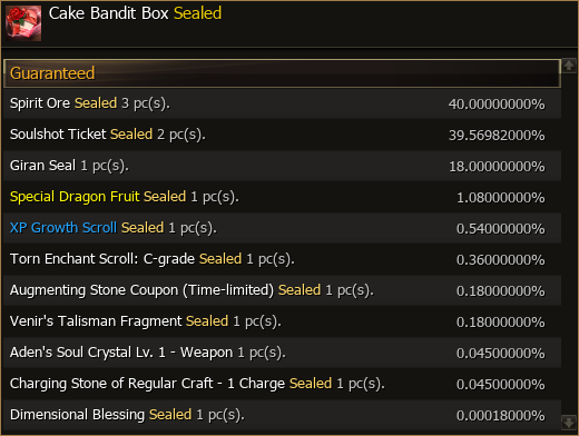 Cake Bandit Box — can be exchanged with the event NPC in Rune Township.